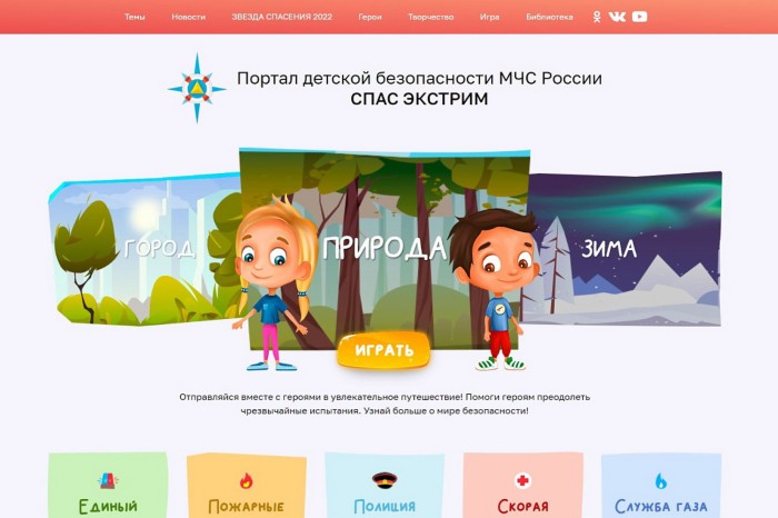 Научить детей основам безопасности можно в игровой форме с помощью Портала детской безопасности МЧС России «Спас-экстрим». Это информационно-познавательный портал о правилах детской безопасности в различных экстремальных ситуациях, посетив который каждый ребенок сможет познакомиться с главным героем сайта – Спасиком.